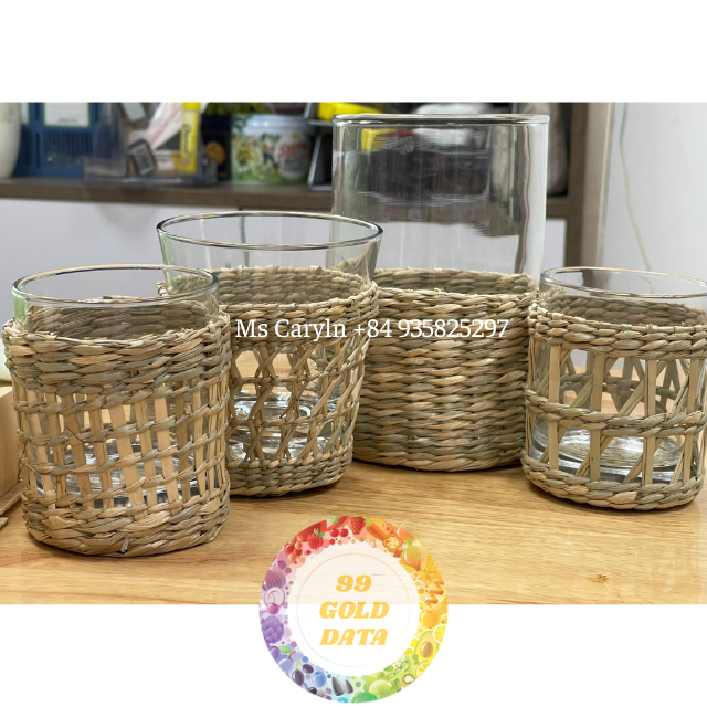 Seagrass Tumbler Cup Sleeve Elegant Glass Lantern Cover Pillar Candle Jar Holder Storage Baskets Convenient Home Organization