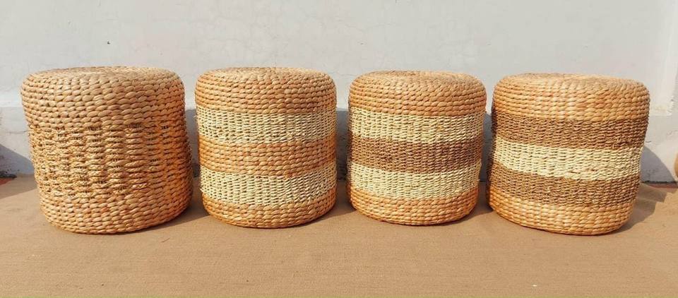Seagrass Water Hyacinth Foot Stool Outdoor Cushion Convenient & Versatile for House Floor 2025- Water hyacinth cushion pad decor