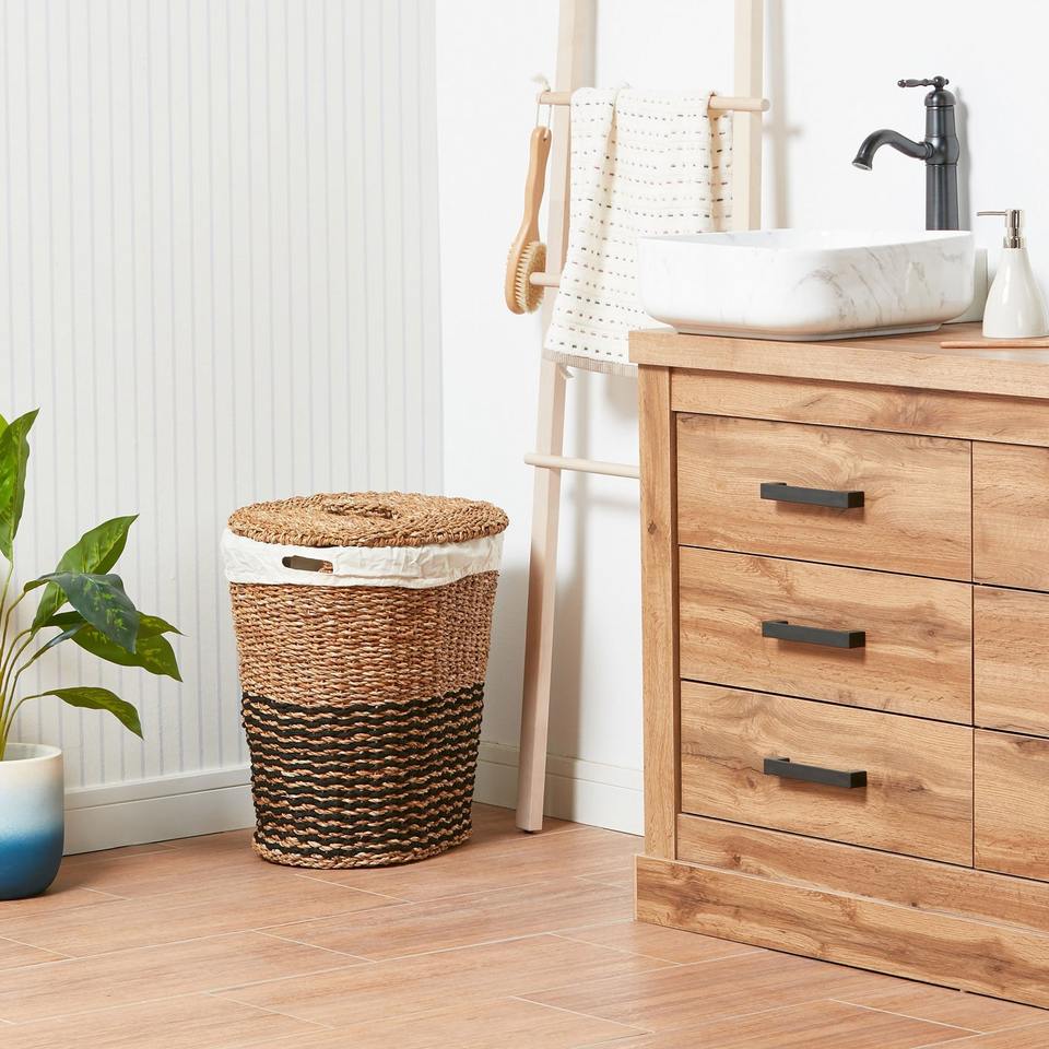 Seagrass basket organizer wholesale supply sea grass bin baskets hand woven raffia straw bins