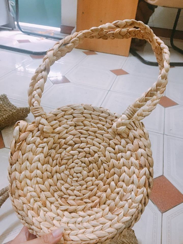 Vintage Style Seagrass Beach Basket Unisex Square Matting with Wool Lining Open Closure Type
