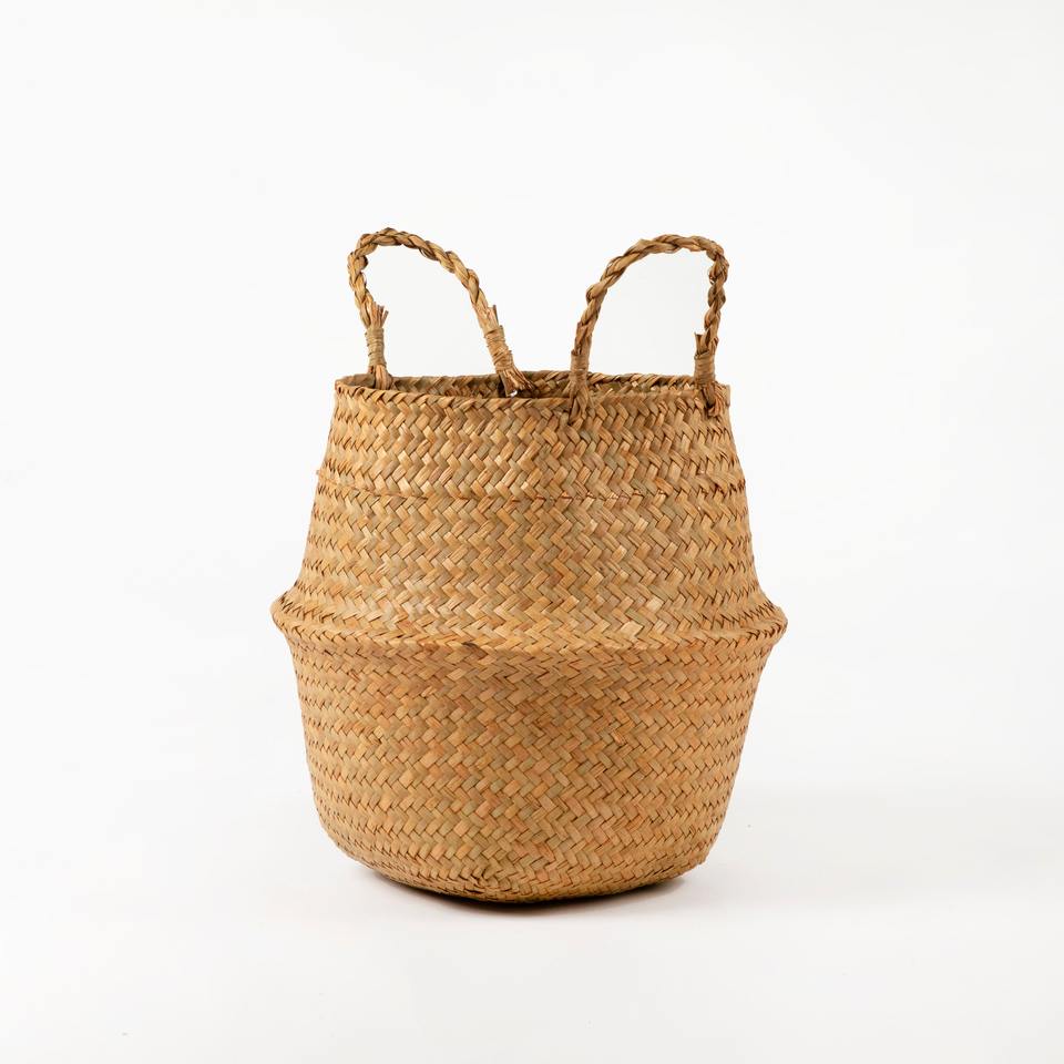 Seagrass belly baskets cheapest wholesale price folding natural straw wicker basket made in Vietnam