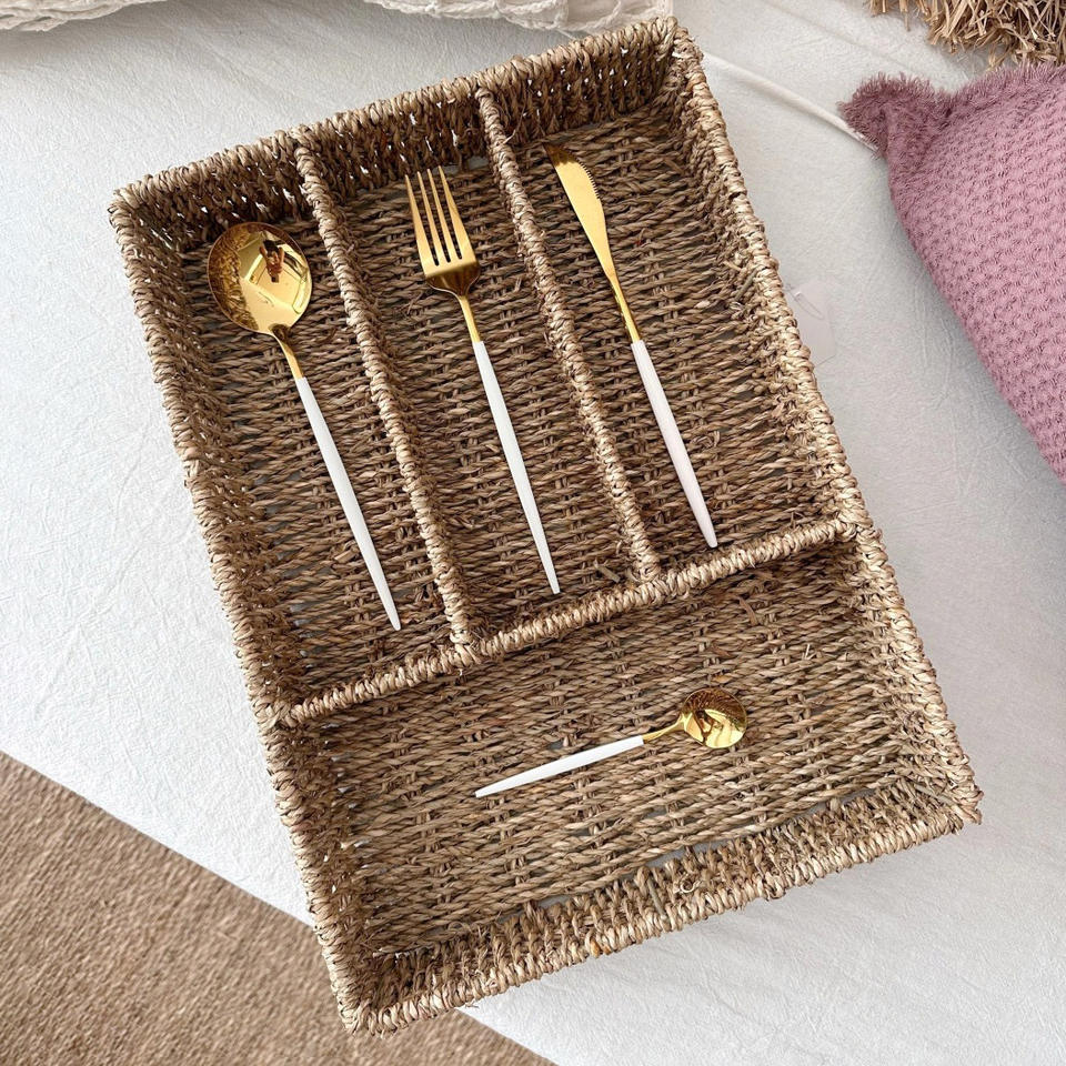 Seagrass cutlery compartment tray natural sea grass section trays hand weave utensil caddy