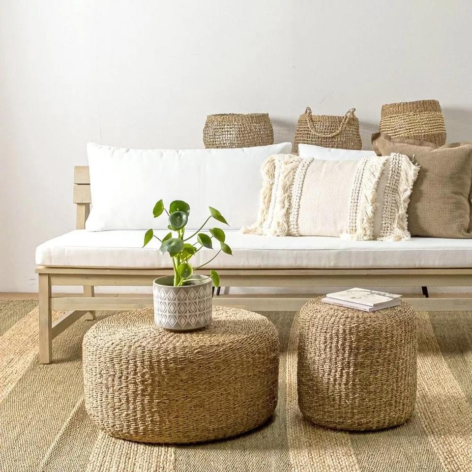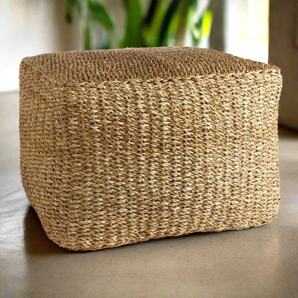 Seagrass foot stool woven pouffle ottoman straw footrest ottomans sea grass pouf footstool