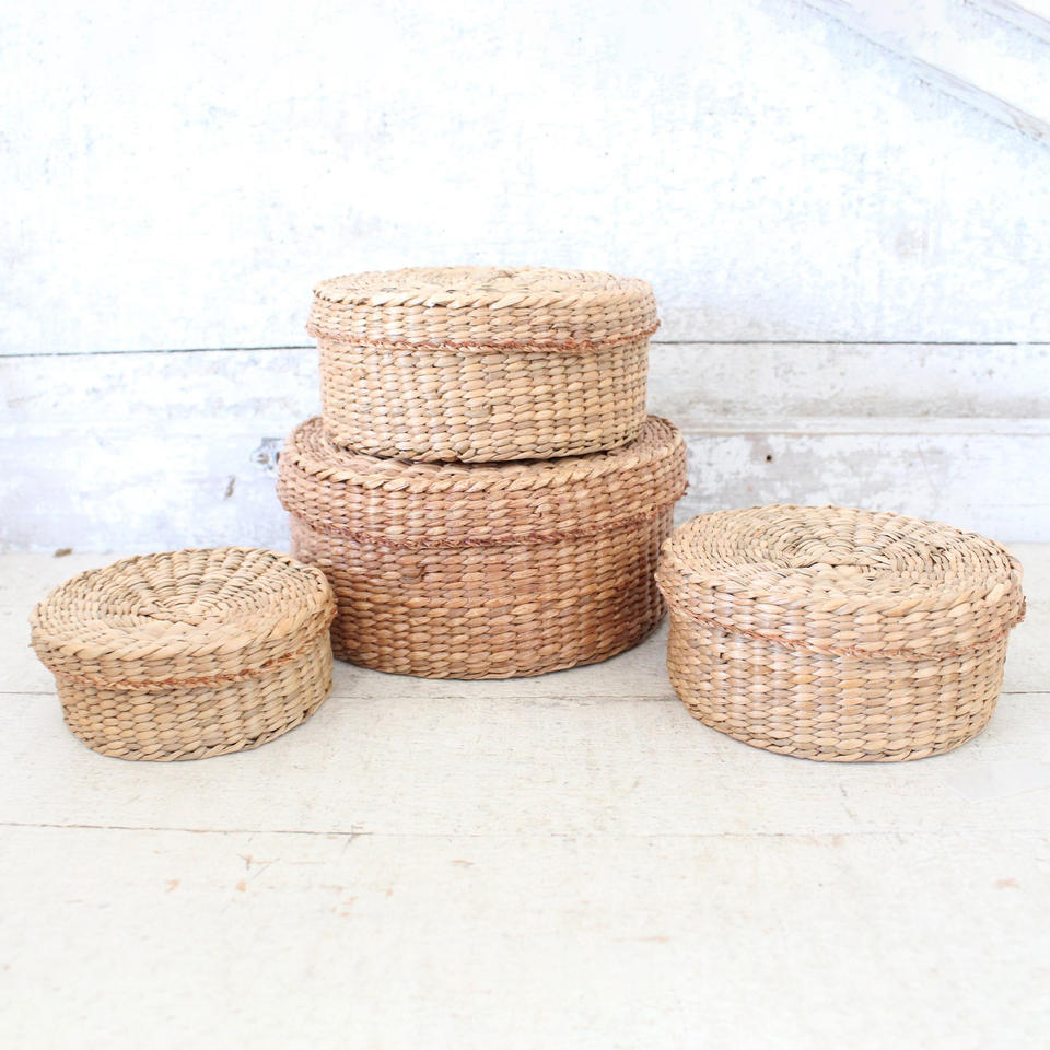 Seagrass trinket makeup box set best price straw storage boxes woven sea grass lidded baskets