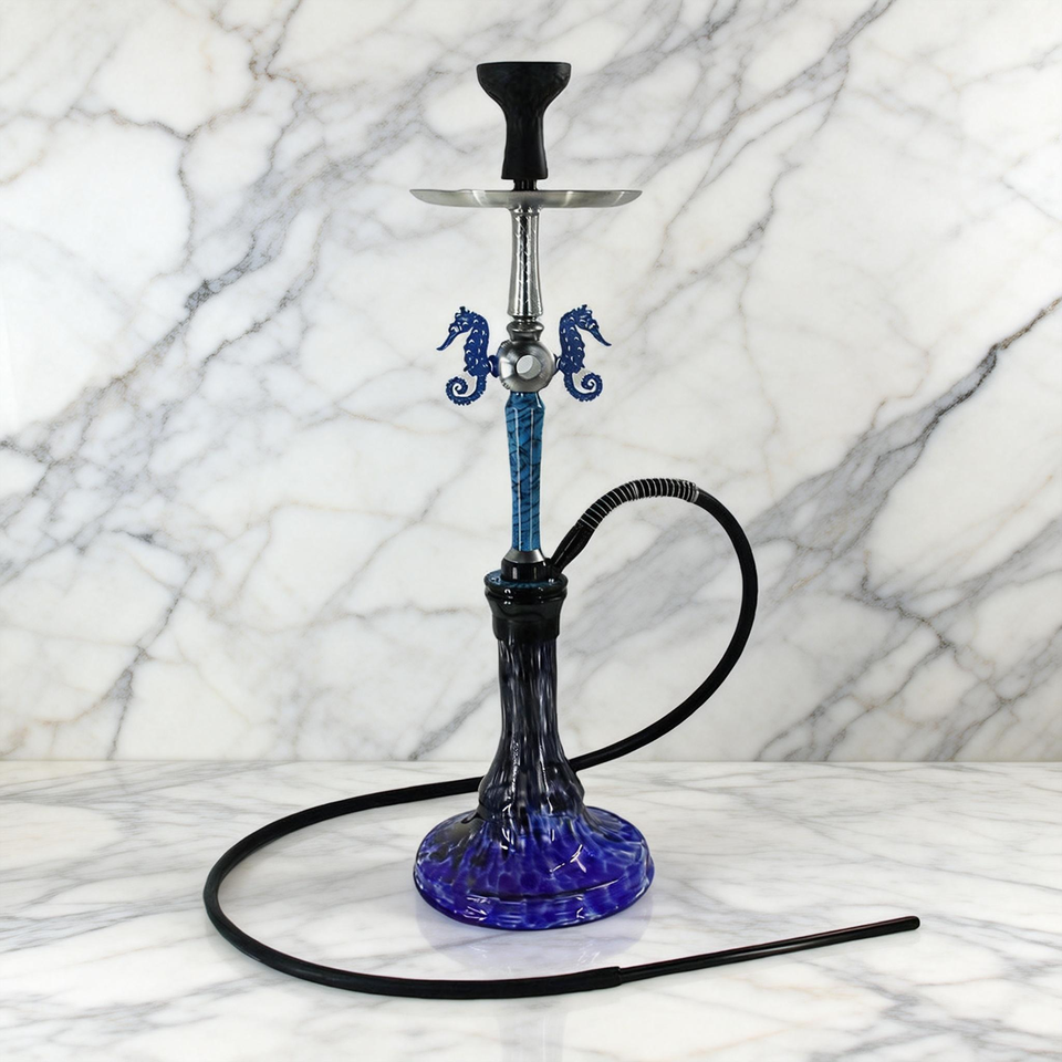 Seahorse Decor Color-Gradient Glass Hookah - Blue/Yellow/Red Tube & Wave-Texture Base for Personalized Leisure