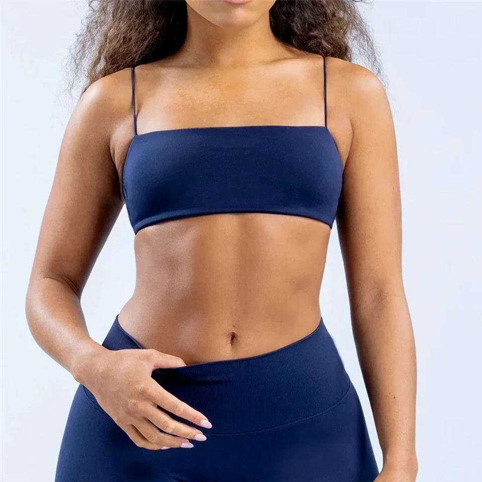 Seamless Bandeau Sports Bra Women Padded Spaghetti Strap Gym Top Lightweight Stretch Workout Fitness Yoga Activewear