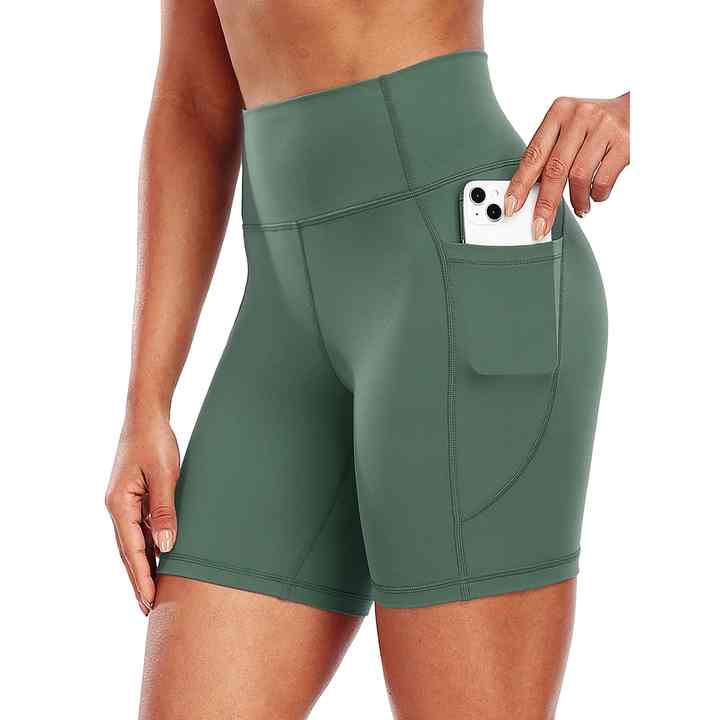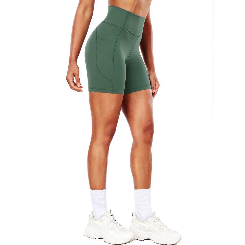 Seamless Hip Lifting Workout Fitness Shorts Athletic Style Gym Wear Sport High Waist Quick Drying Yoga Shorts With Side Pockets