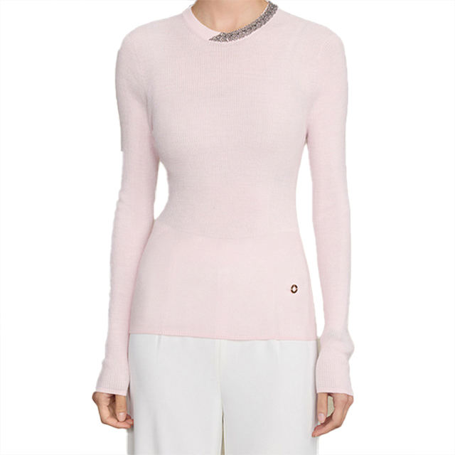 Seamless Integrated Fine Wool Knit Base Layer WomenInner Wear Heavy Industry Beaded Top Crew Neck Design Sweater