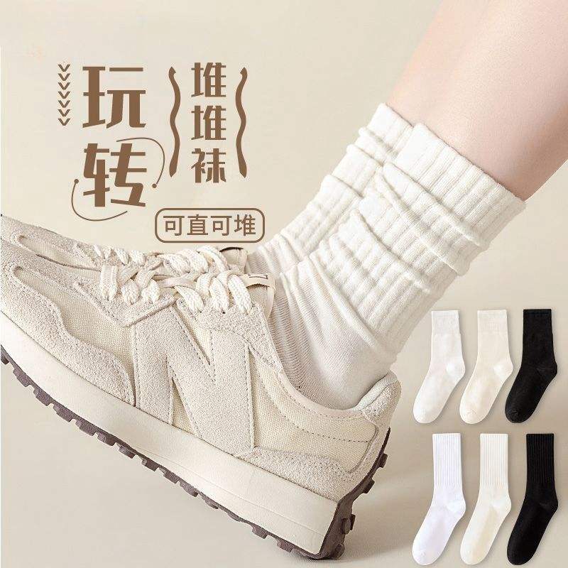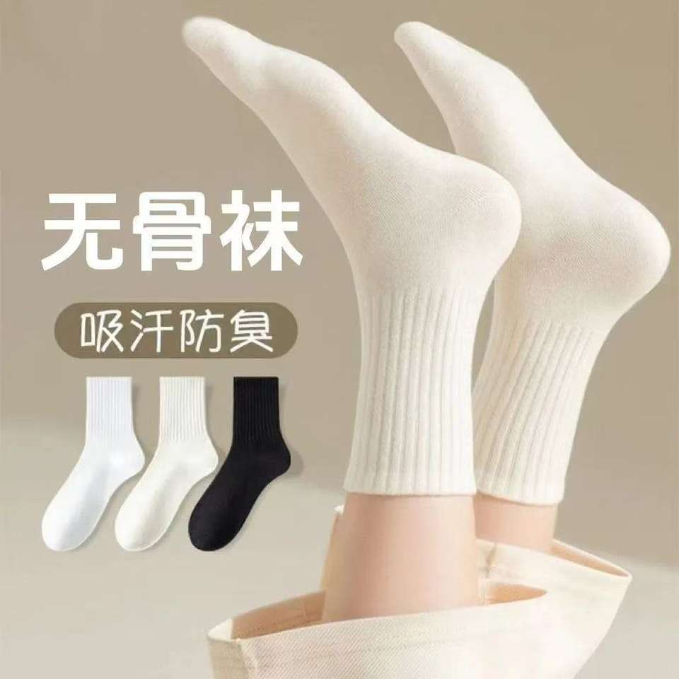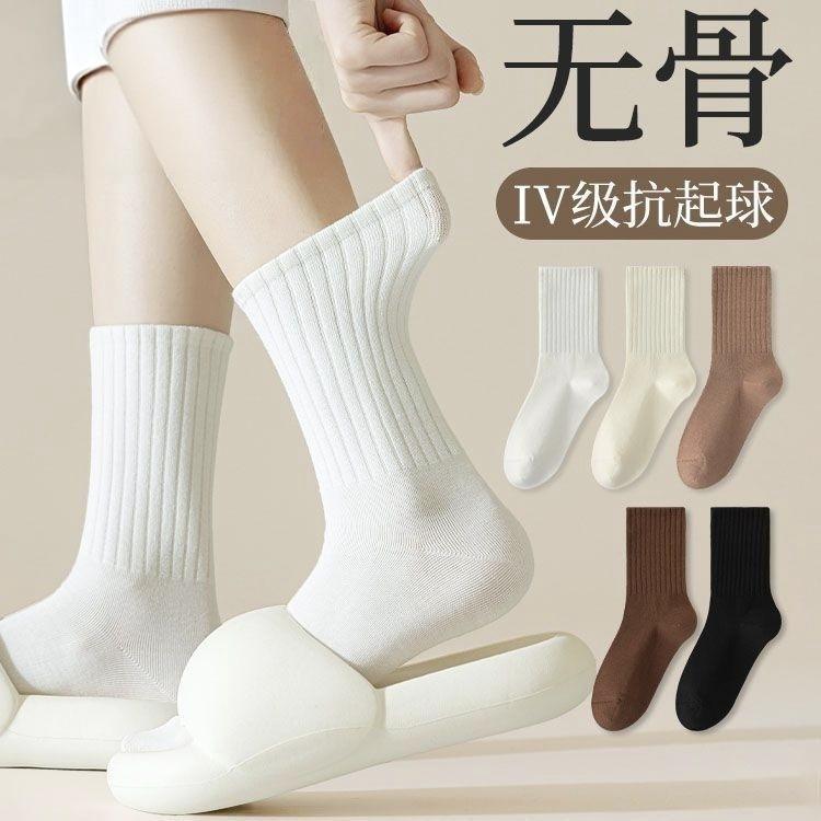 Seamless Mid Calf Socks Solid Color Polyester Fiber Breathable Casual Daily Wear Spring Autumn Winter Styles Youth Women's