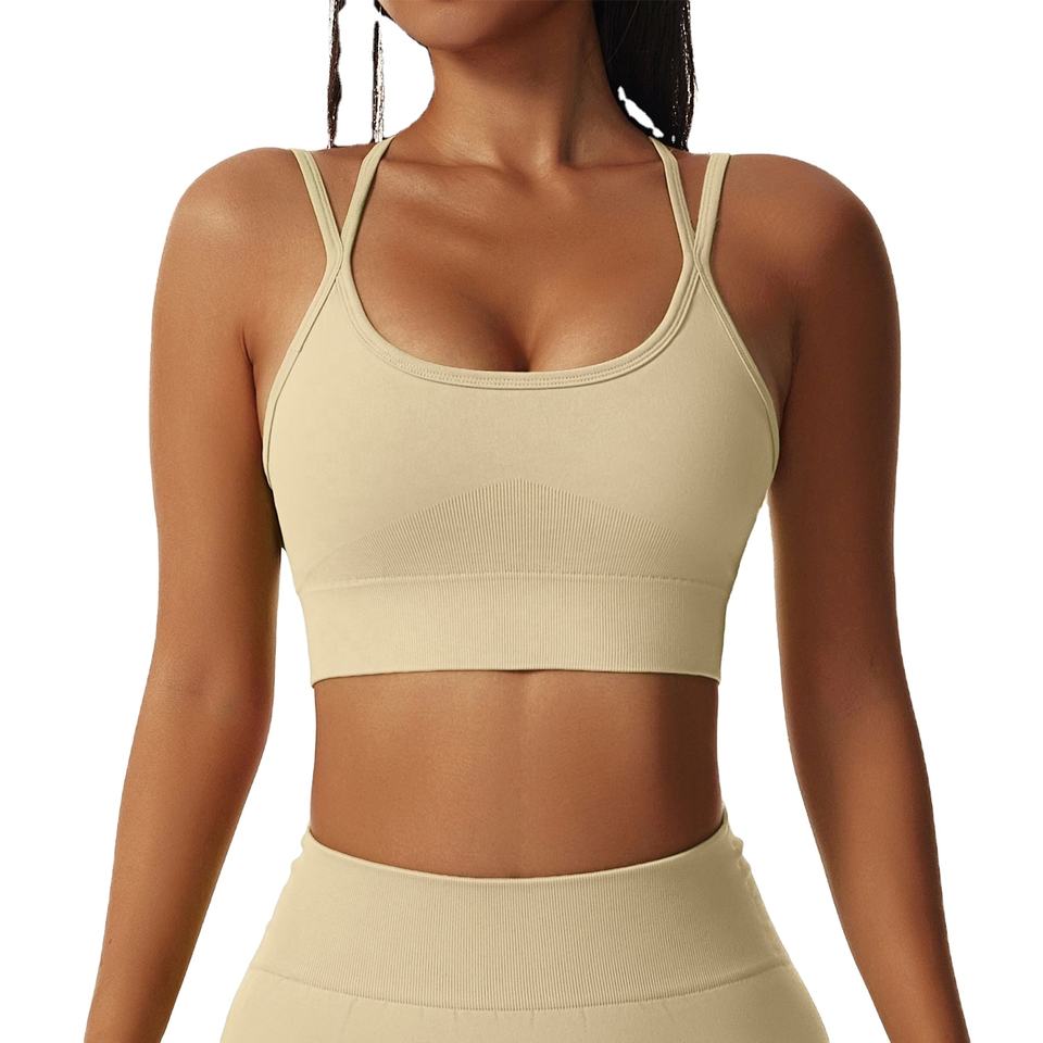 Seamless Plus Size Lightweight Breathable Sports Women's Fitness Gym Padded Push-Up Strappy Yoga Bra