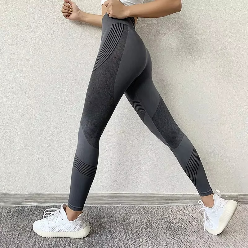 Seamless Slim Leggings Women Stretch Stripe Tights High Waist Hip Lift Gym Running Quick Drying and Breathable Yoga Sports Pants