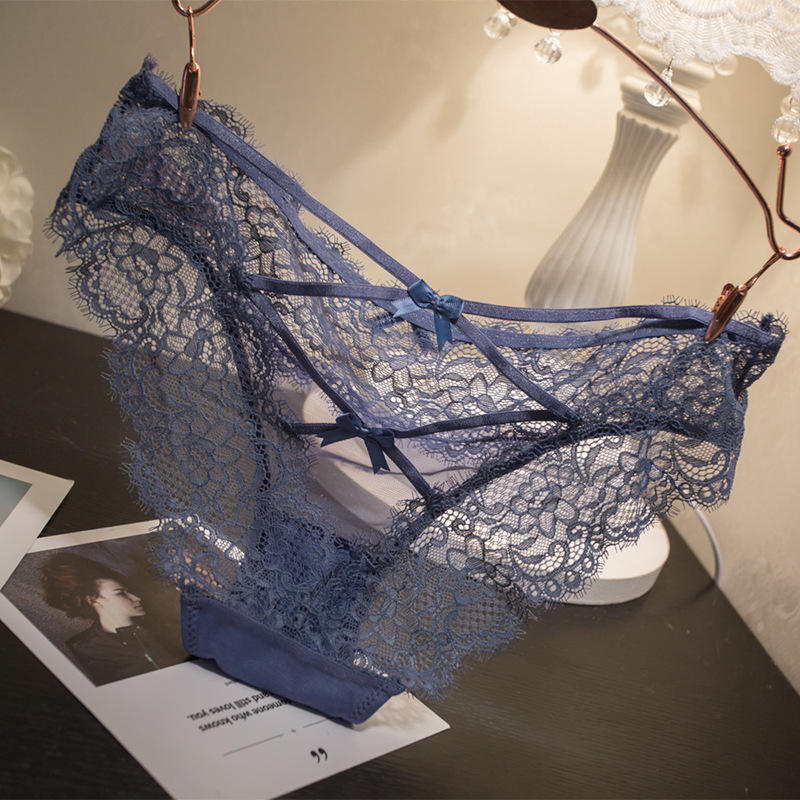 Seamless Spandex/Polyester Medium Control Ladies Panties Sexy Lace Embroidery Low-Rise Cross Hollow See-Through Briefs for Women