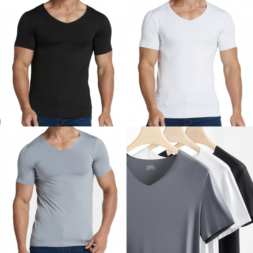 Seamless V-Neck Men's Short Sleeve Cooling Inner Tee No-Sew Runnin