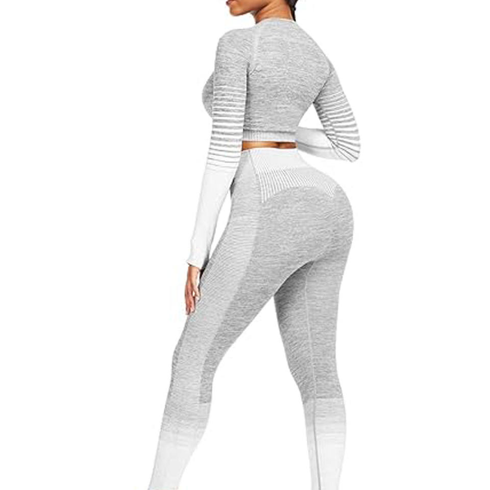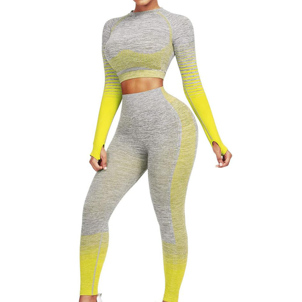 Seamless Women s Workout Set 2 Piece Long Sleeve Crop Top and High Waist Leggings | Stretch Fitness Activewear for Gym Yoga