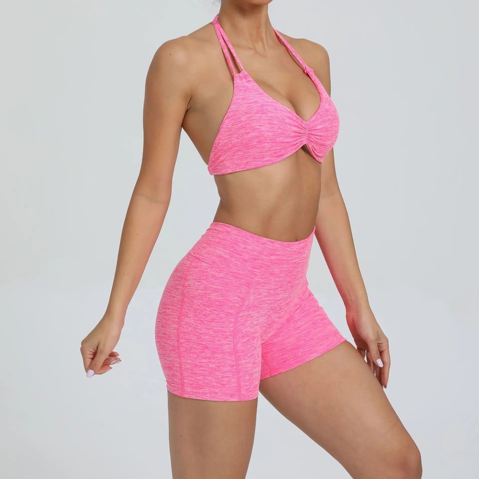 Product name:Seamless Womens Fitness Set Halter Neck Sports Bra