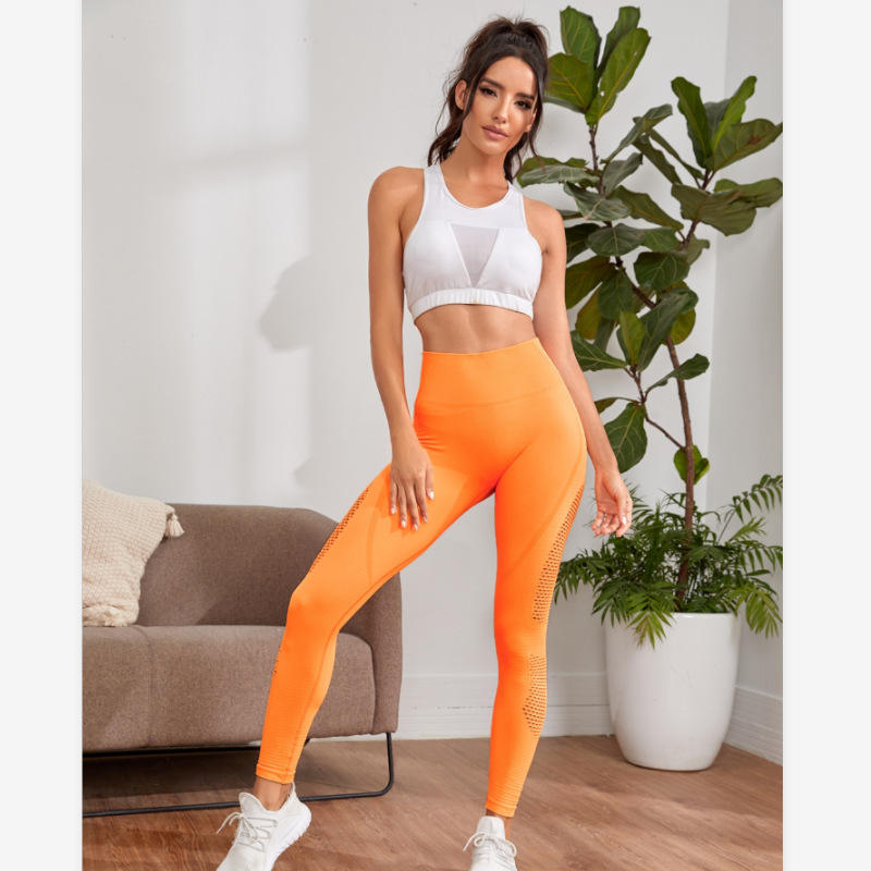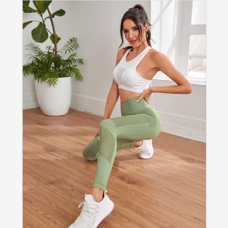 Seamless Yoga Leggings Women Capris Slim Fit Nylon Quick Dry Moisture Wicking Gym Tights Breathable Mesh Running Pants