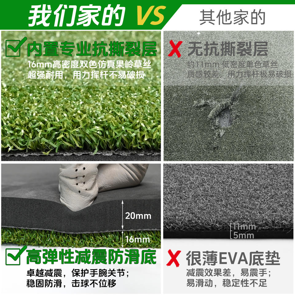 Seaoem Golf Hitting Mat 16mm Artificial Grass Outdoor Practice Mat With EVA Base For Swing Training