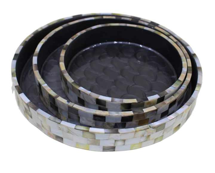 Seashell Chocolate Lacquer Mother Pearl Inlaid High End Quality Handcrafted Serving Tray Unique Design for Ramadan Tableware