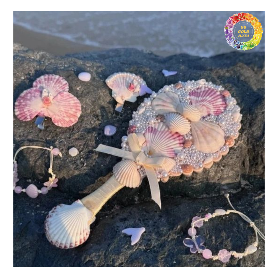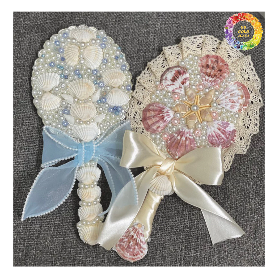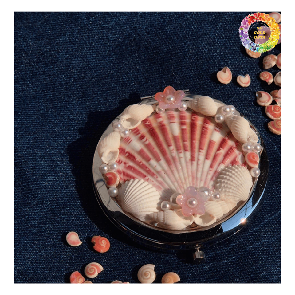 Seashell Compact Mirror, Ocean-Inspired Vanity Mirror Handmade with Real Shells and Pearls, Ideal for Beach Bags or Travel Use