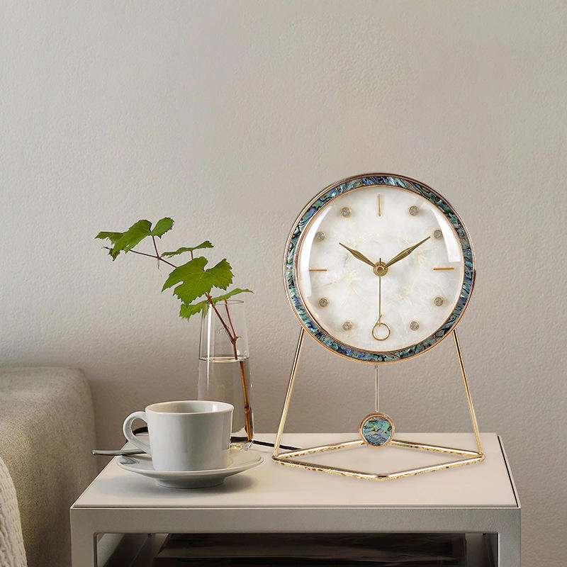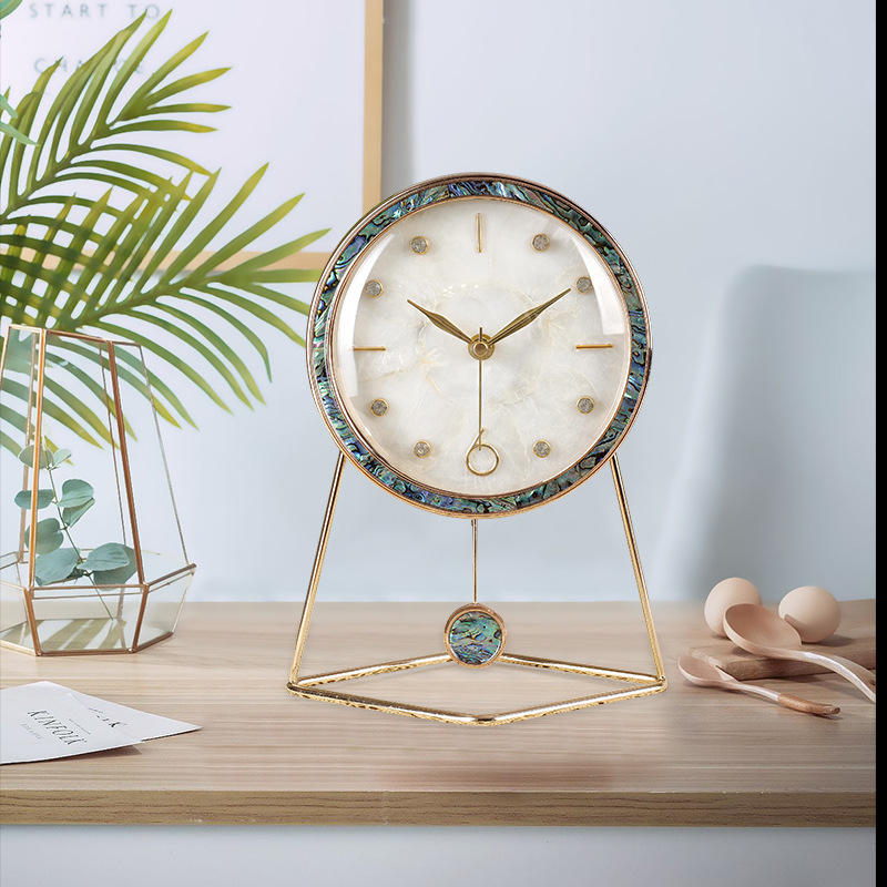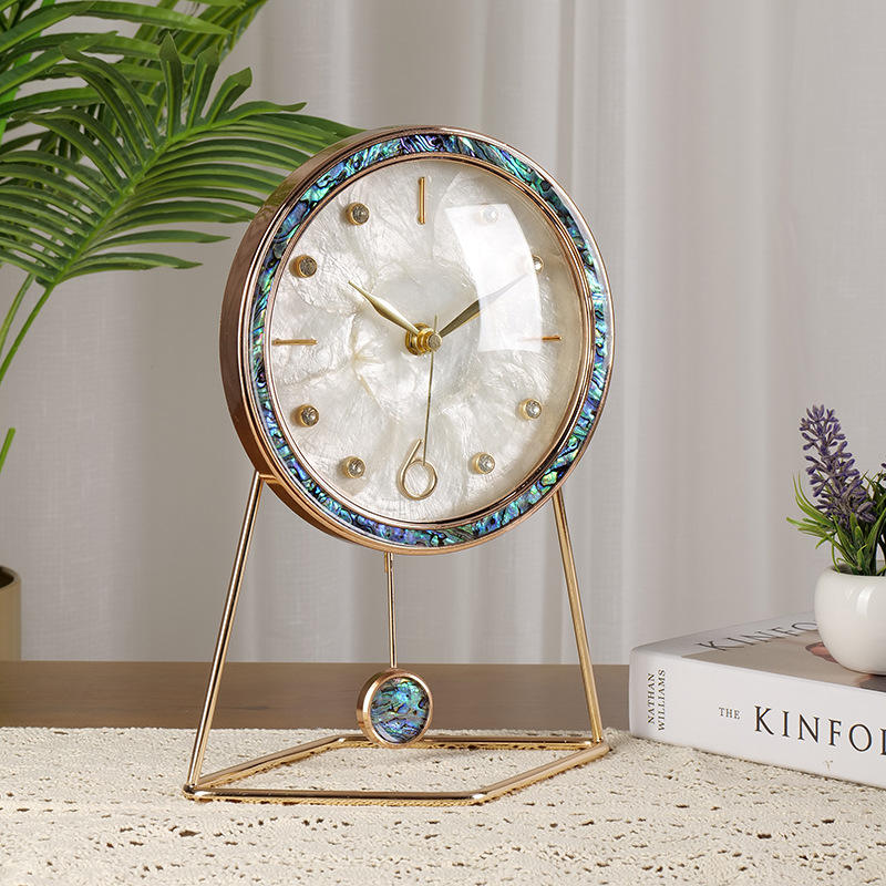 Seashell Desk Clock Circular Quartz Movement Home Decor Elegant Table Clock For Living Room Interior Design Ornament