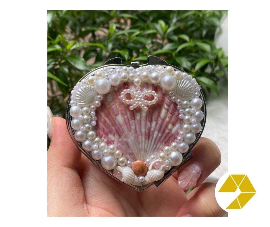Seashell Mirror Elegant Polished Shells Mini Compact Seashell Mirror Coastal Style Portable Beach Decor Special Offer Deal