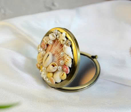 Seashell Mirror Ideal for Travel Beauty Touches Seashell Mirror with Real Shells Used for Beach Fashion and Summer Vacations