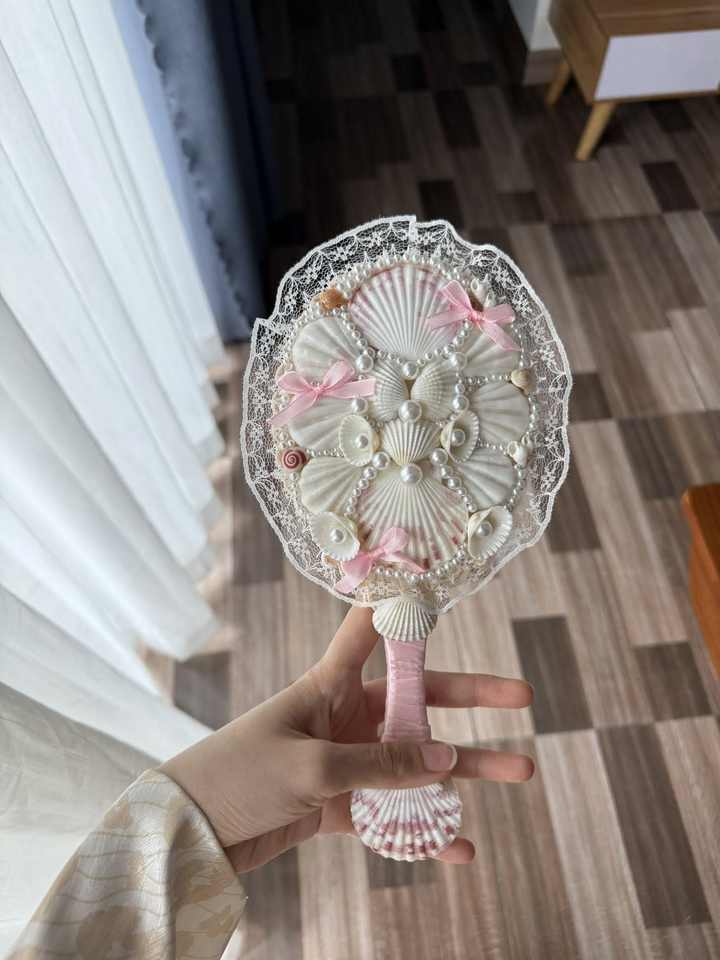 Seashell Mirror with white and beige tones from Vietnam Seashell Mirror suitable for beach house, villa or cafe interior design