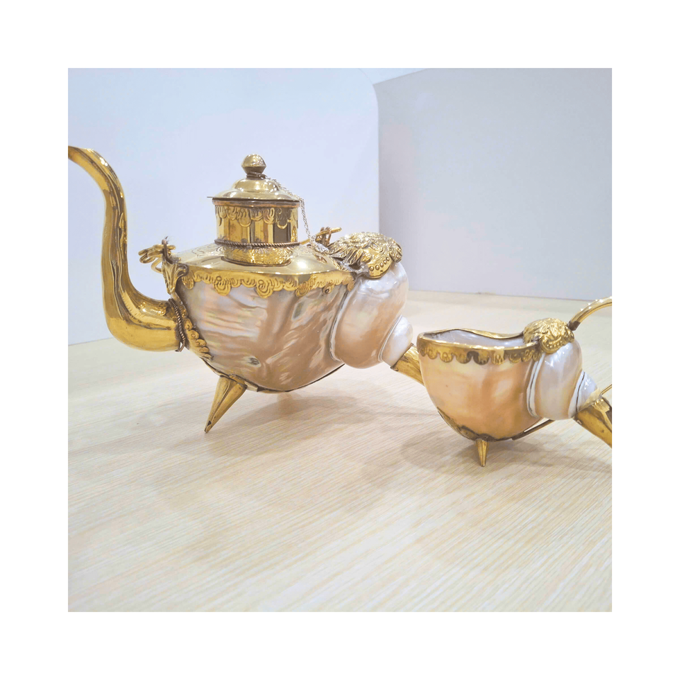 Seashell tea pot set elegant finish, material: mother of pearl shell; use: home tea serving; origin: Vietnam artisan workshop