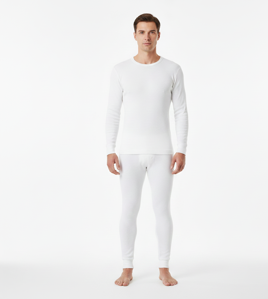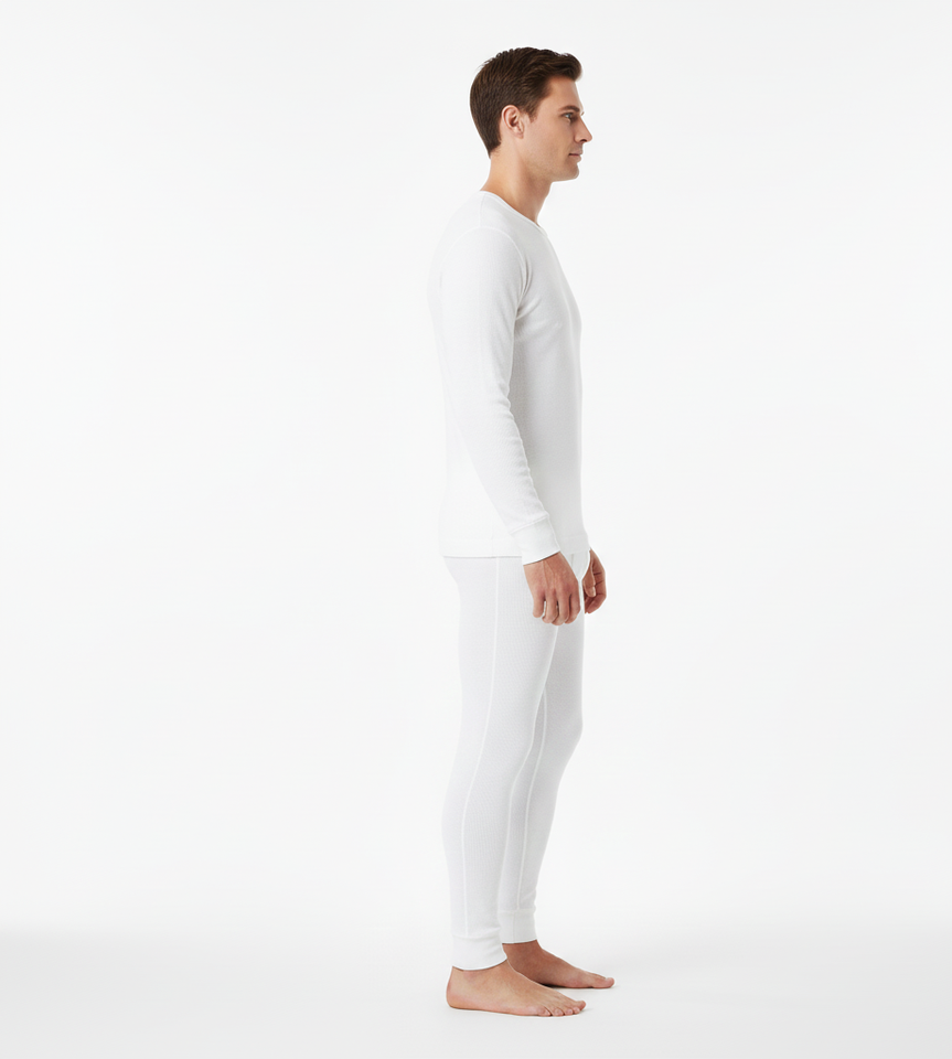 Season Ready White Men Thermal Suit Built with Full Sleeve Soft Breathable Fabric Providing Warmth for Winter Wear