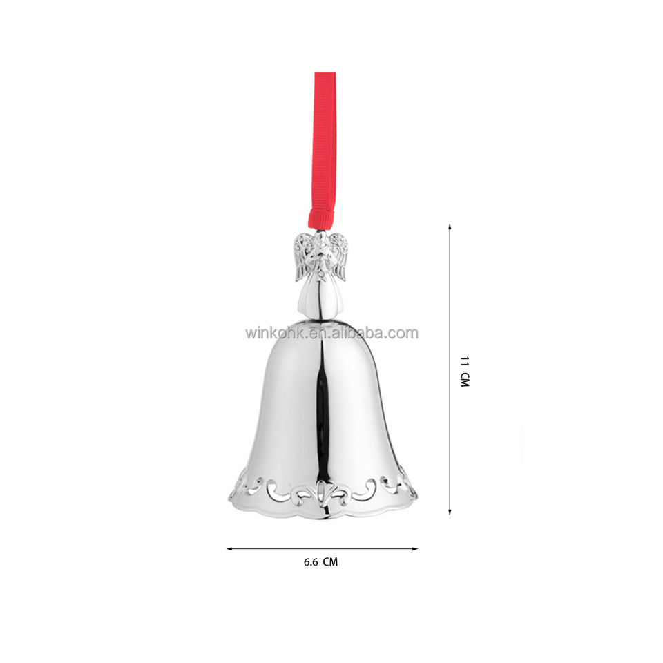 Seasonal Metal Die Casting Angel Bell 3D Christmas Decoration Ornament Silver Plated Red Ribbon Xmas Tree Festival Home Decor