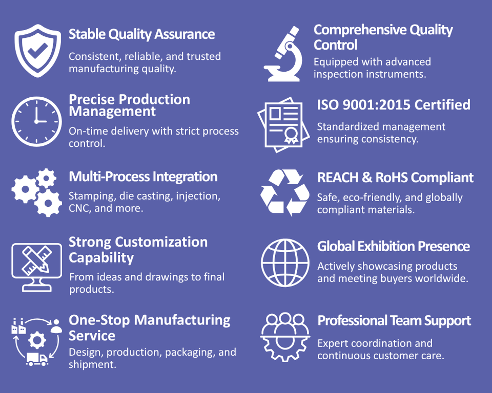 Precision Manufacturing Processes:Stamping, CNC, Die Casting, Injection Molding, Forging, Wire EDM, etc.