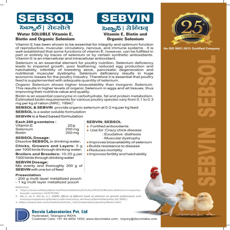 Sebvin Organic Selenium Poultry Feed Additive with Vitamin E & Biotin Immunity Boost Stress Relief & Growth Support for Chicken
