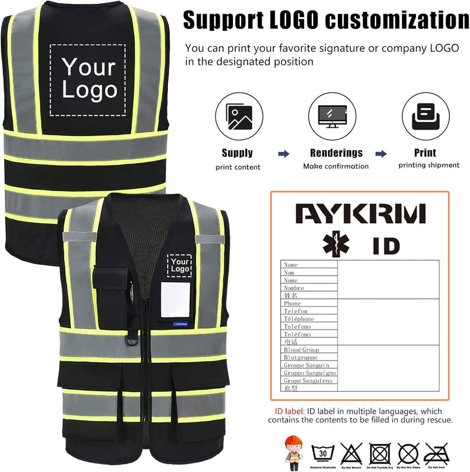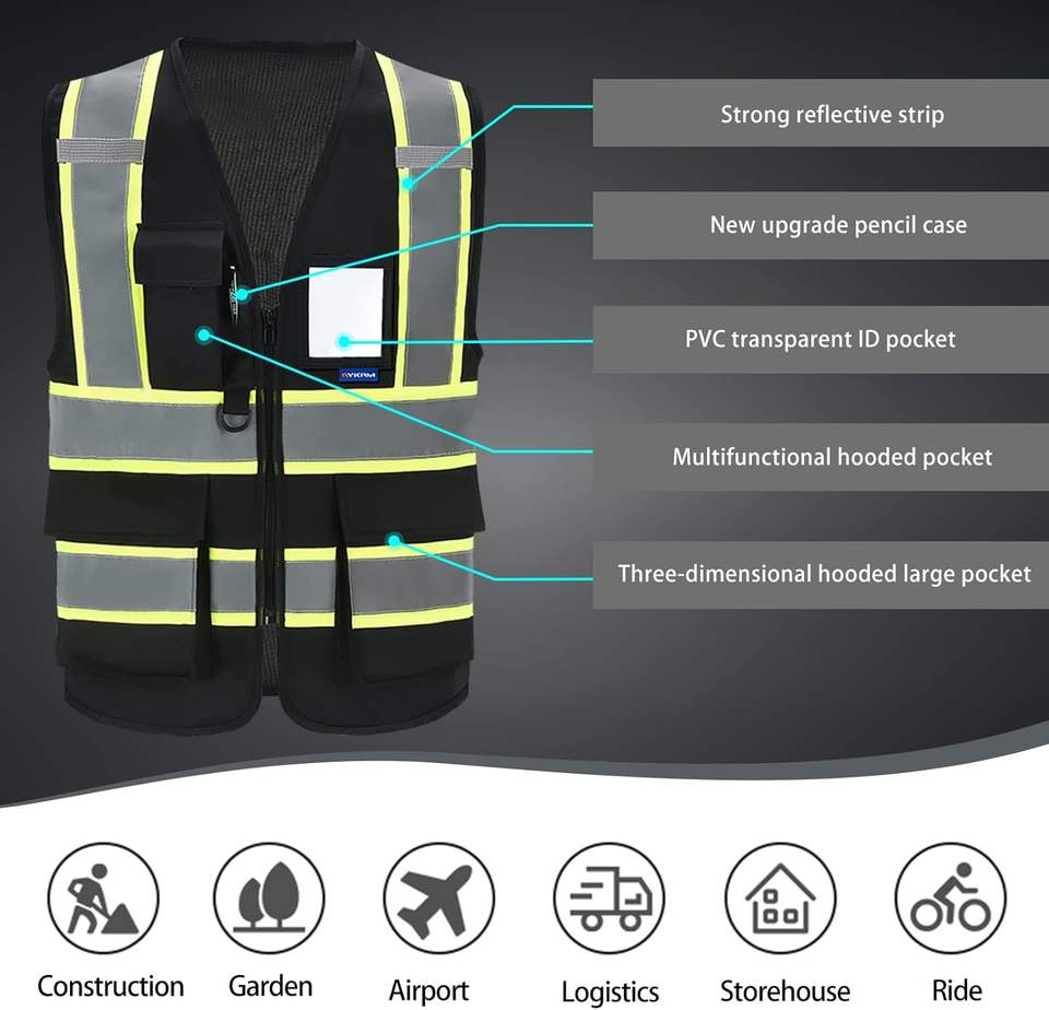 High Visibility Reflective Security Vest for Men Women Canvas Material Reversible 7 Pockets Front Zipper Mesh Safety Vest