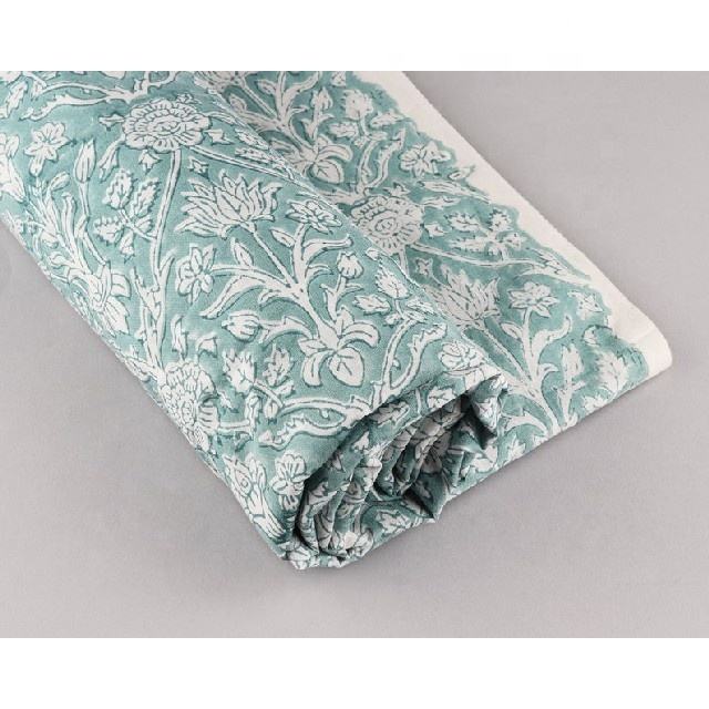 See Green Floral Print Hand Block Print India Fabric Yard Fabric for Dress Making