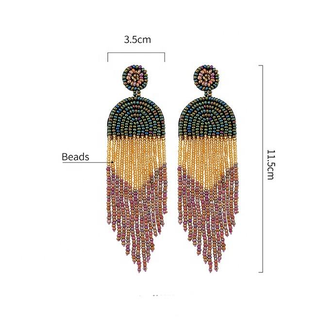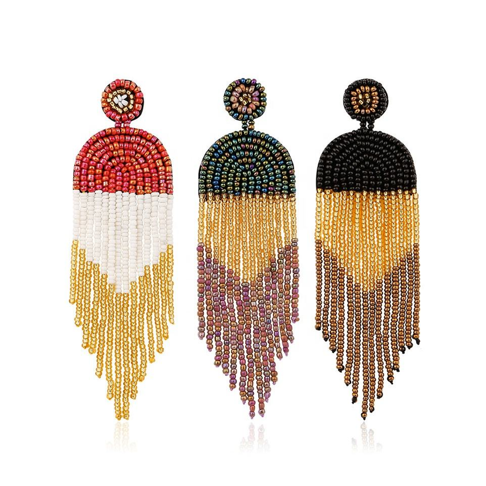 Seed Bead Earring Wholesale Boho Long Gold White Red Beaded Tassel Earrings for Women