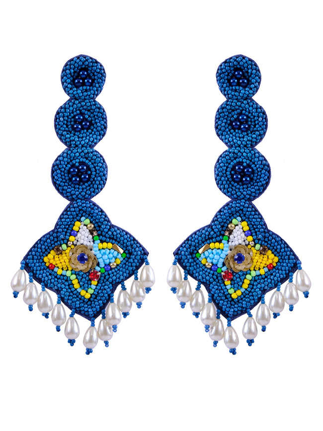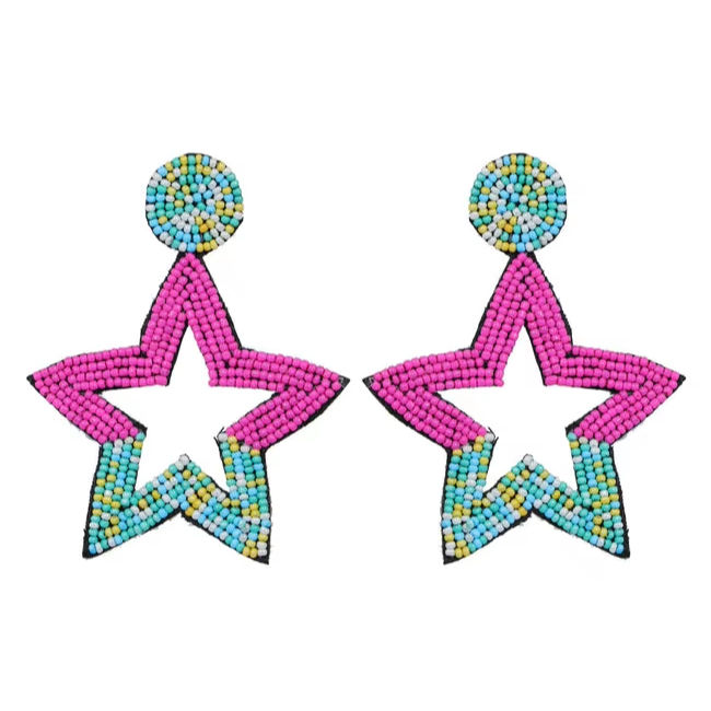 Seed Bead Earrings Multi Colour Star Shape Embroidered Handmade Earrings From India Fashion Jewellery for Women and Girls