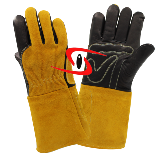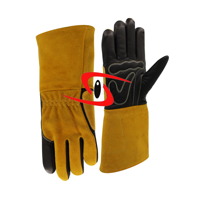 Material:Cowhide GRAIN leather palm & cowhide SPLIT leather back & cuff