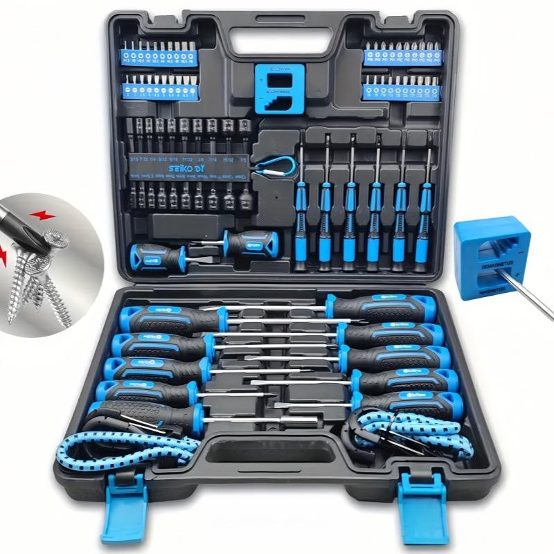 Seiko Tool 83-Piece Screwdriver Set 37X57Cm Chrome Vanadium Steel Precision Hand Tool Kit With Demagnetizer And Bungee Rope