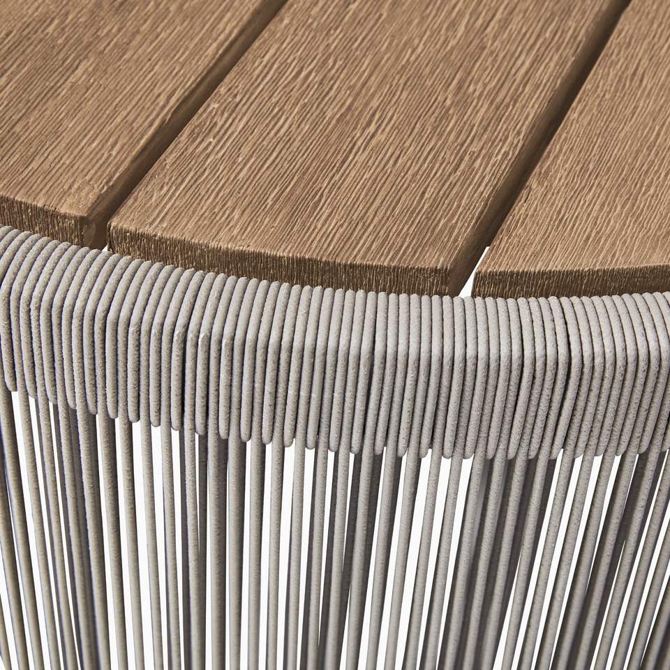 Description:Outdoor Round Coffee Table made of teak wood with woven gray rope.