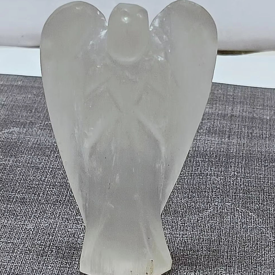 2-Inch Selenite and Agate Healing Angels Figurines Feng Shui Style Carved for Energy Balance Meditation and Spiritual Decor
