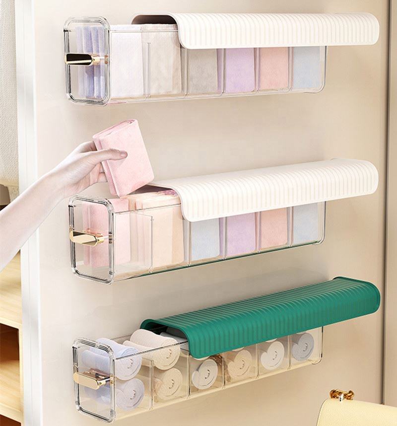 Self-Adhesive Anti-Dust Storage Boxes 6-Cell HIPS+PET Single Organizers Switchable Wall Mount Drawer Socks Underwear Wardrobe