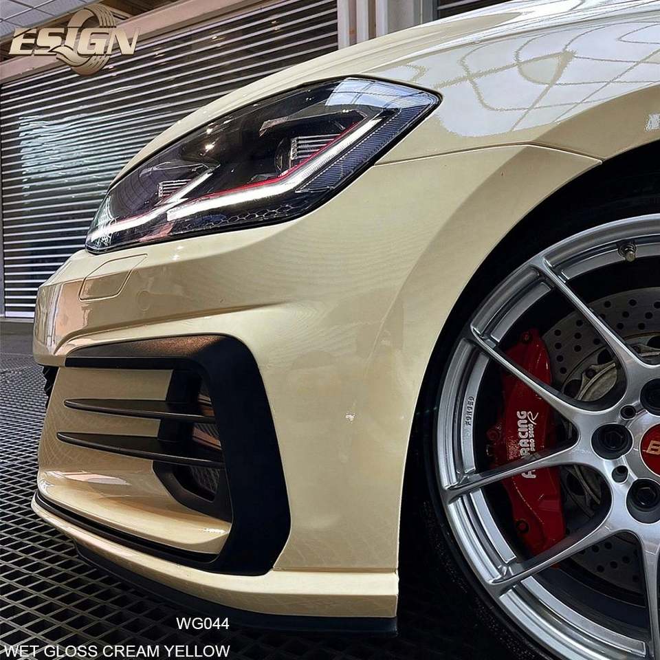 Self-Adhesive Crystal Gloss Cream Yellow Car Body Wrapping Film Full Roll Vehicle Vinyl Wrap with Low Tack Glue PVC Anti-Scratch