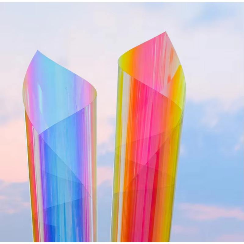 Self Adhesive PET Rainbow Colorful Dichroic Glass Window Tint Film with Heat Insulation & UV Cut for Office Building Decoration
