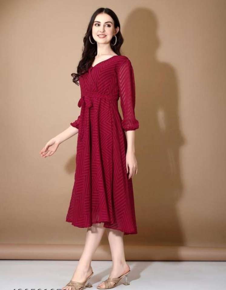 Self-Design Pattern Georgette Western Leriya Fabric Colourful Lawn Three-Quarter Sleeves Available Pink Red White Black Green
