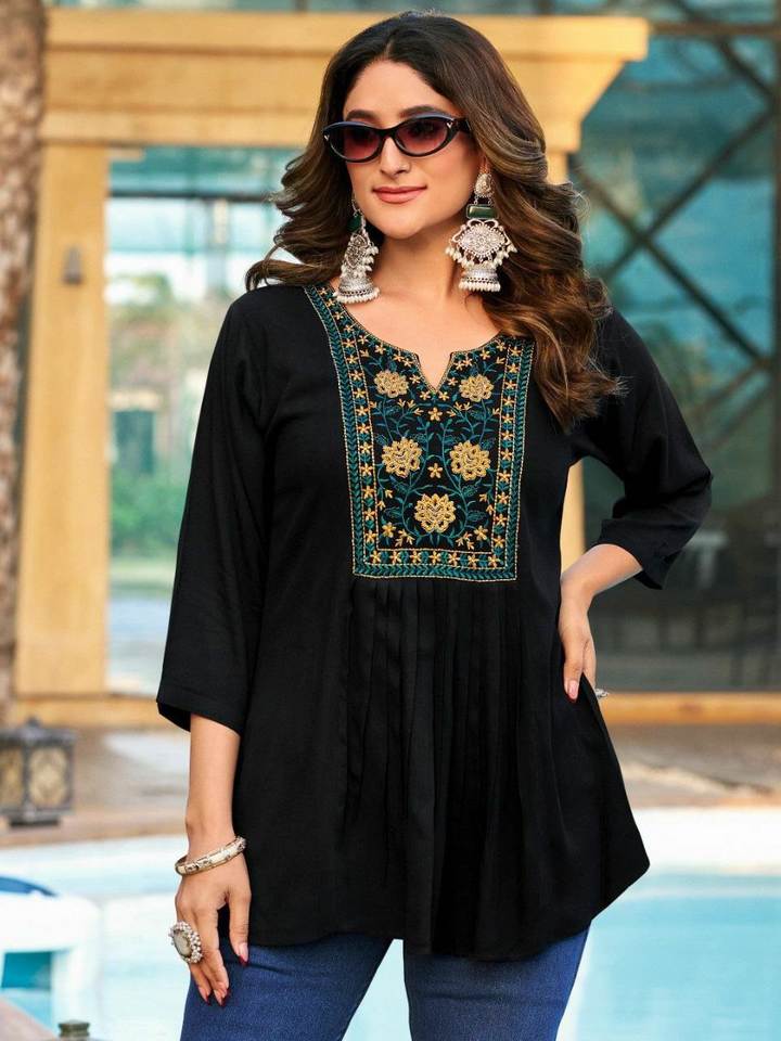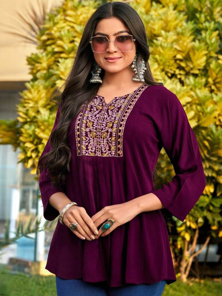 Self Embroidery Hot& Pretty Women Special Heavy Rayon With Embroidery Work Regular Days& Party Wear Fancy Kurti At Lowest Rate
