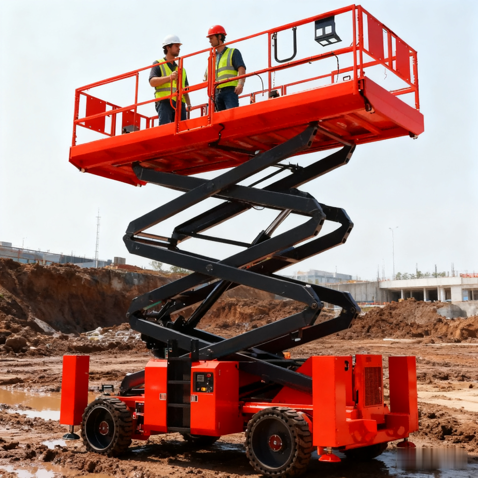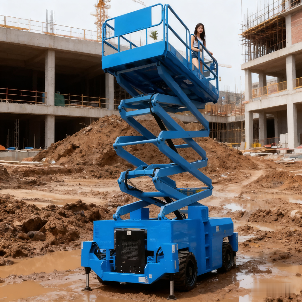 Self-Propelled 11.40m Crawler Scissor Lift with Outriggers-New Steel Working Platform with Cable Sling for Hotels Construction