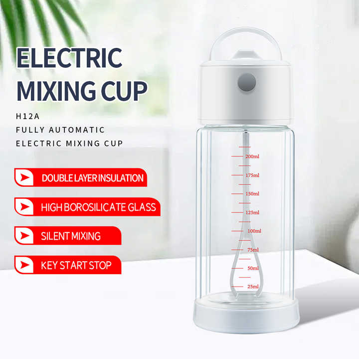 Portable USB Borosilicate Glass Mug Self-Stirring Blenders with Push Button Controls for Home Office Car Hotel Outdoor Use