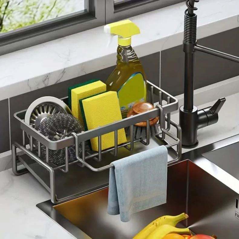 Self-draining Sink Shelf Stainless Steel Kitchen Sink Drain Rack Soap Sponge Holder Kitchen Sink Organizer