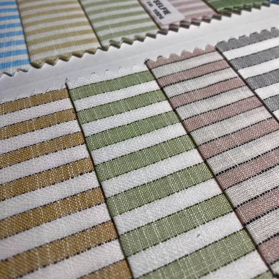 Selfie Cotton Linen Stripe Fabric Premium Shirting Material D No 1027
