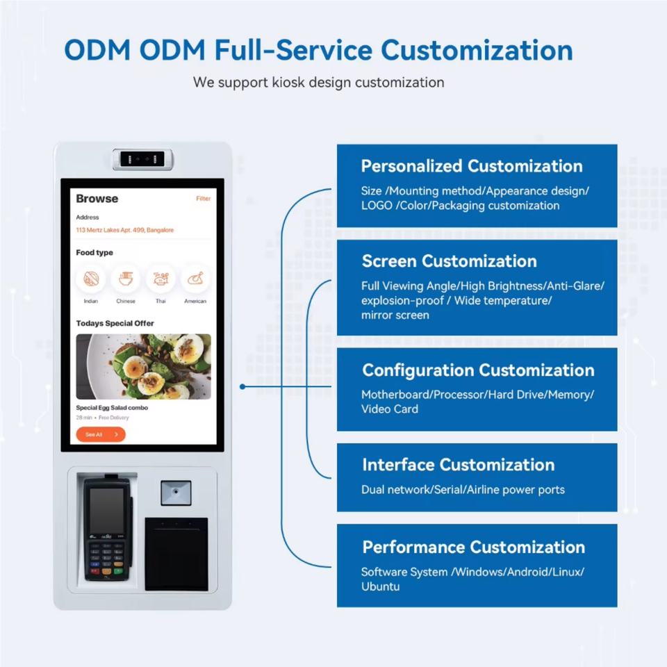 Selfservice Kiosks 15.6 21.5 23.8 27 32 Inch Touch Screen Terminal Payment Kiosk for Self Service for Wall Mount Floor Standing
